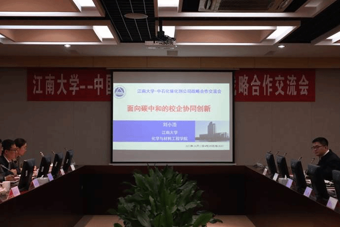 顾正彪对焦阳一行来访我校调研开展战略合作交流表示热烈欢迎。他简要介绍了学校的发展历史和学科优势,表示未来学校将加大对能源化工催化和材料学科的支持力度,积极对接产学研合作,为满足国家战略需求提供技术支持,贡献江大智慧和力量。