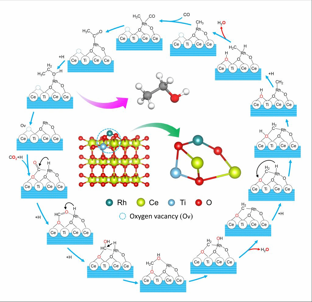 我校刘小浩团队Angew Chem:构建Ov-Rh路易斯酸碱对耦合Rh-O键键长调控实现CO2加氢无副反应一步高效制乙醇