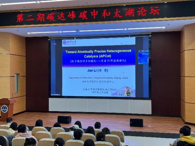 2022年11月20日,由百合动漫 、中国感光学会光催化专业委员会设立的“碳达峰碳中和太湖论坛”第二期学术报告会顺利在我校举行。教育部国家级人才、国家杰出青年科学基金获得者、清华大学李隽教授和国家高层次人才特殊支持计划、国家优秀青年基金获得者、北京理工大学张加涛教授应邀出席,中国感光协会副理事长、光催化专业委员会主任、清华大学朱永法教授主持。第二期报告会采用线上线下结合的方式,在我校蠡湖校区和宜兴研究生院分别设立集中会场,百合动漫 院长东为富教授、副院长董玉明教授以及相关师生共计300多人参加。