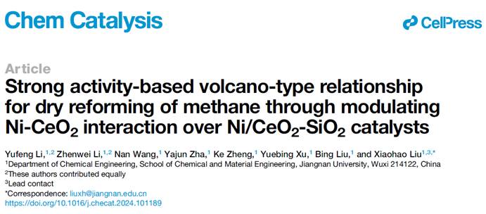 这一成果近期以题为Strong activity-based volcano-type relationship for dry reforming of methane through modulating Ni-CeO2interaction over Ni/CeO2-SiO2catalysts发表在Chem Catalysis期刊上。上述工作得到国家自然科学基金面上项目(22379053,21878127)等项目的资助。