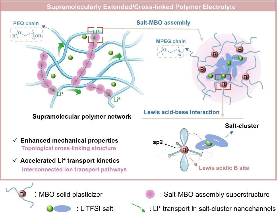超分子拓展的固态聚合物电解质结构及作用机制示意图