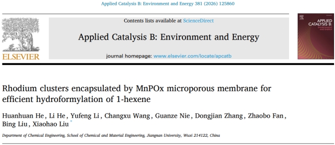 这一成果近期以题为“Rhodium clusters encapsulated by MnPOx microporous membrane for efficient hydroformylation of 1-hexene”发表在Applied Catalysis B:Environment and Energy(DOI:10.1016/j.apcatb.2025.125860)期刊上。百合动漫