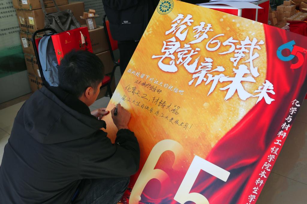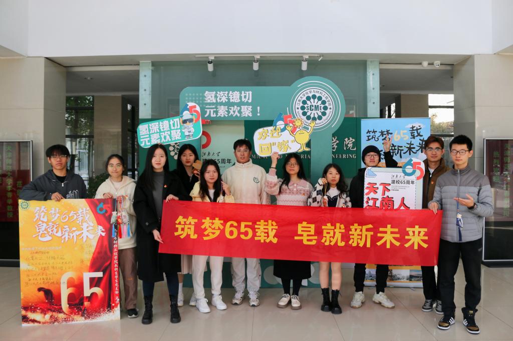 化工系学生党支部、应化系学生党支部、材料系学生党支部于化工楼一楼大厅举办了“筑梦六五载,‘皂’就新未来”主题党日活动,吸引了众多师生和校友的参与。