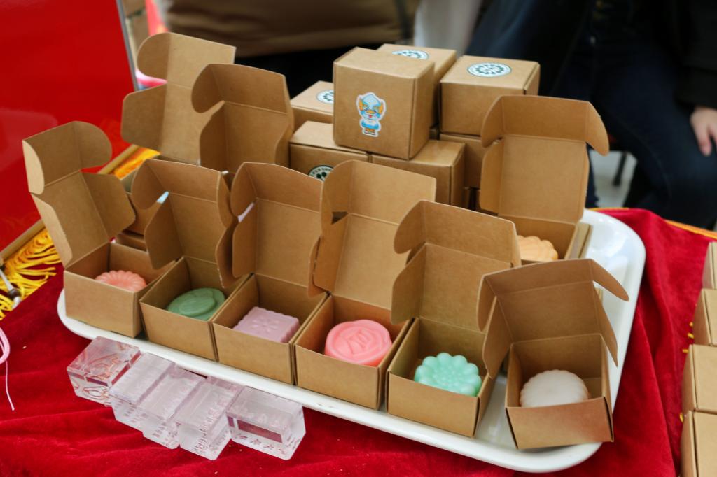 是国内第一个设置“日用化工”专业的大学,被誉为“中国化妆品人才培养的摇篮”。本次活动以学院日化学科特色为基础,组织学生党员提前为师生及校友们准备了精美的自制手工皂。活动现场,在工作人员对比赛规则和内容进行了详细介绍之后,参与者首先从答题箱里抽取香囊,取出香囊中的题目作答。题目包括党的理论知识、校情校史、院情院史等内容。参与者在答完题目后,在展板上写下对学校和学院的祝福语,即可抽取手工皂盲盒。活动现场准备校庆主题印章若干,参与者可以在领取到的手工皂上刻字,定制“专属”手工皂。