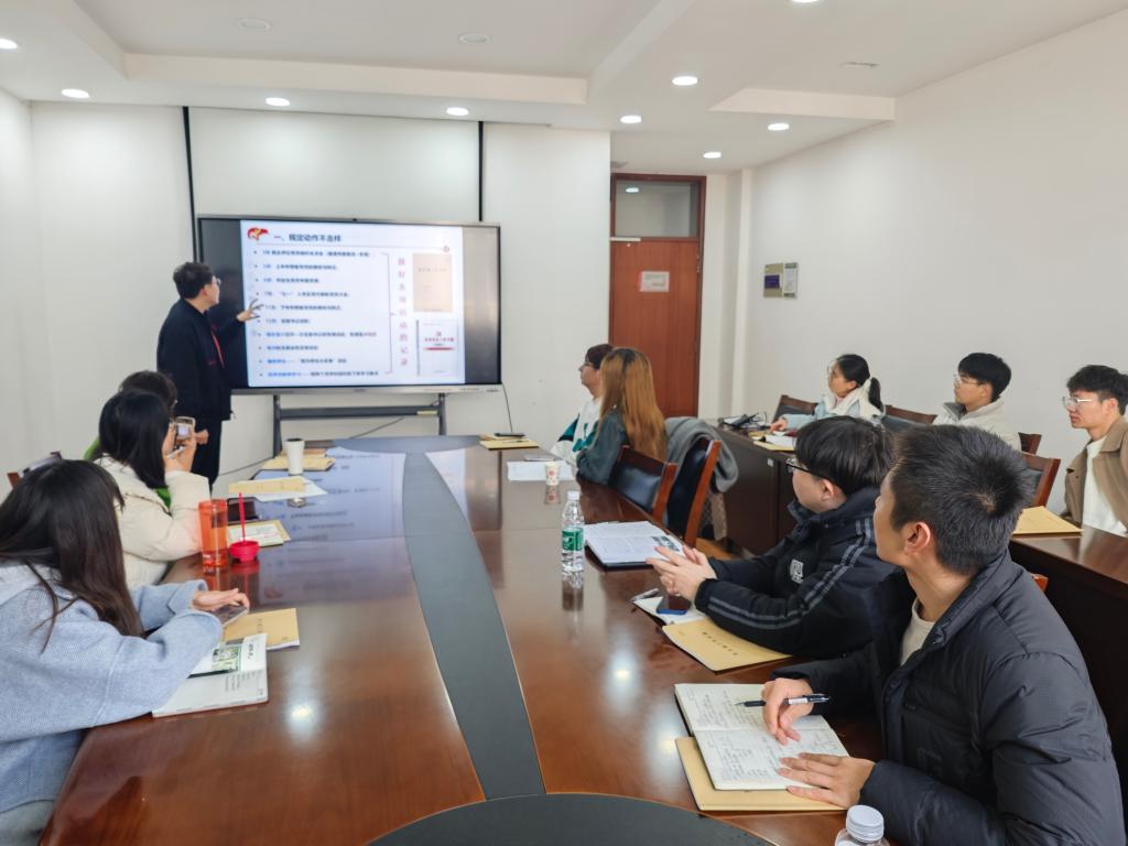 会上首先通报了2023年度党支部工作手册的检查情况,针对手册中出现的共性问题做了总结,并提出改进意见。接着,对新学期民主评议党员、党员发展等工作进行了细致的部署并提出工作要求。接下来,博士生党支部书记李家豪分享了自己的支部工作经验,提出支部工作要“固定动作不走样、材料撰写合规范、特色活动勇创新”。最后,杨璇发布了本学期党日活动计划。希望各党支部后续要进一步了解党员特点、摸清同学难点,把握重要节点。在开展党日活动时把握政治方向,突出学科特色,融入科研学习,发挥模范作用。