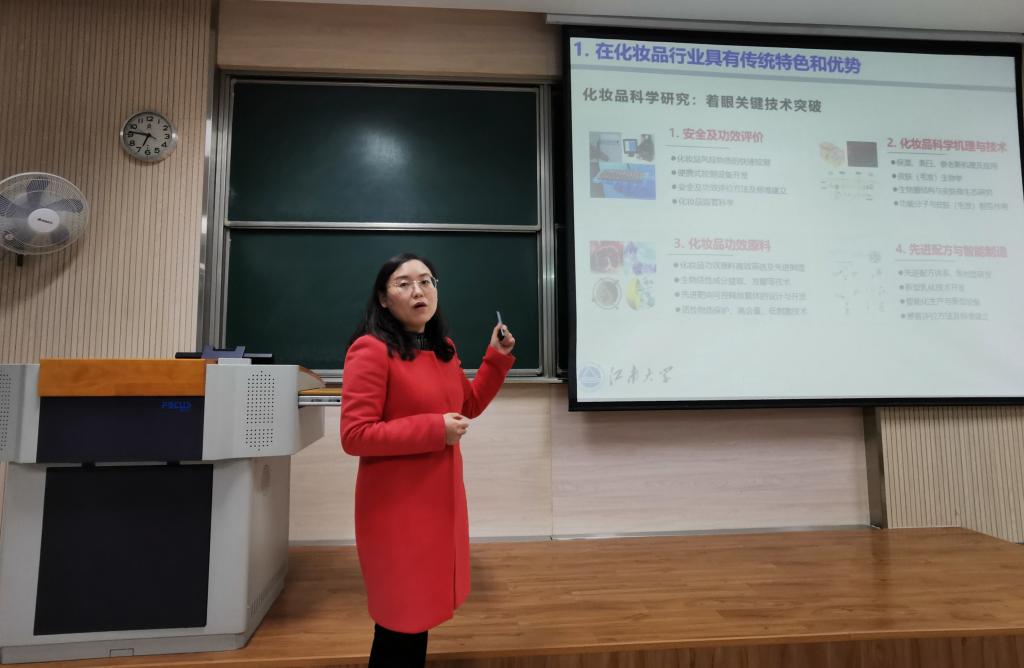 最后,2019级辅导员高静老师讲话,高老师指出,同学们要在自己的日常学习生活中勤于深度思考,多提出问题;高老师强调了樊老师提出的化妆品行业应该具备的“传承、使命、责任”,通过举例,高老师希望同学们热爱自己的专业,做好自己大学未来学业的方向规划。