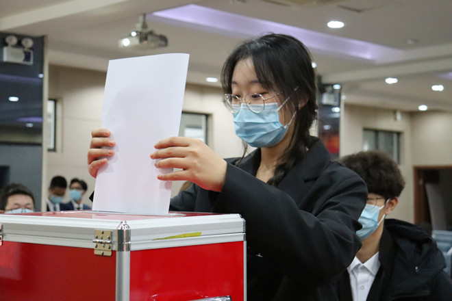 研究会章程(草案)》及监票人、计票人建议名单,马镓鑫、章恒、肖婉玲当选新一届研究生会主席团成员,胡文金等8名同学当选新一届研究生会委员会委员。