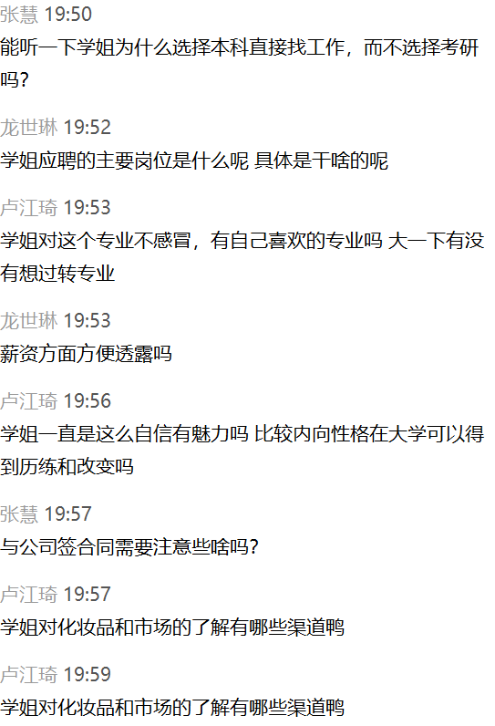 举办“生涯引航,研途相伴”保研、考研、就业经验分享会,共邀请5位成功就业、16位成功升学的学长学姐分享经验,会议由学创部部长管敬主持,2019级本科生辅导员高静及2019级、2020级本科生参与此次活动。