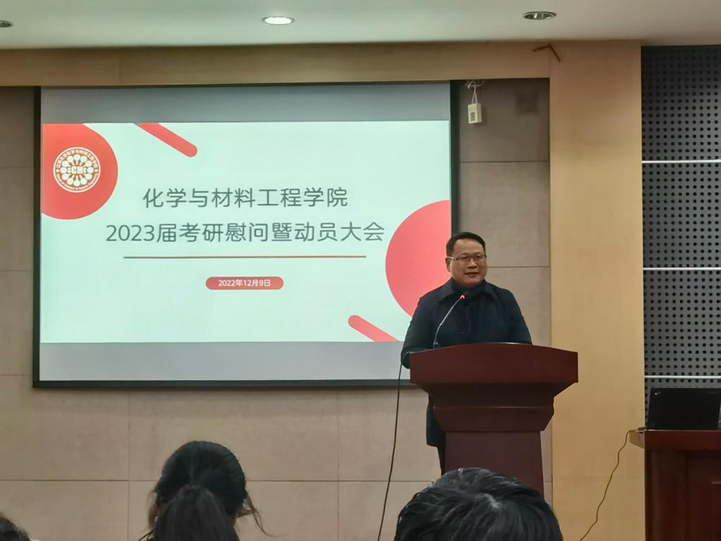 在化工楼B329会议室举办2023届本科生考研慰问暨动员大会,学院党委书记潘庆伟、党委副书记、副院长田卫平、班主任晏晓东、郭爽、杨伟军、严洋洋、朱相苗及部分考研学生出席活动。活动由2019级辅导员高静主持。