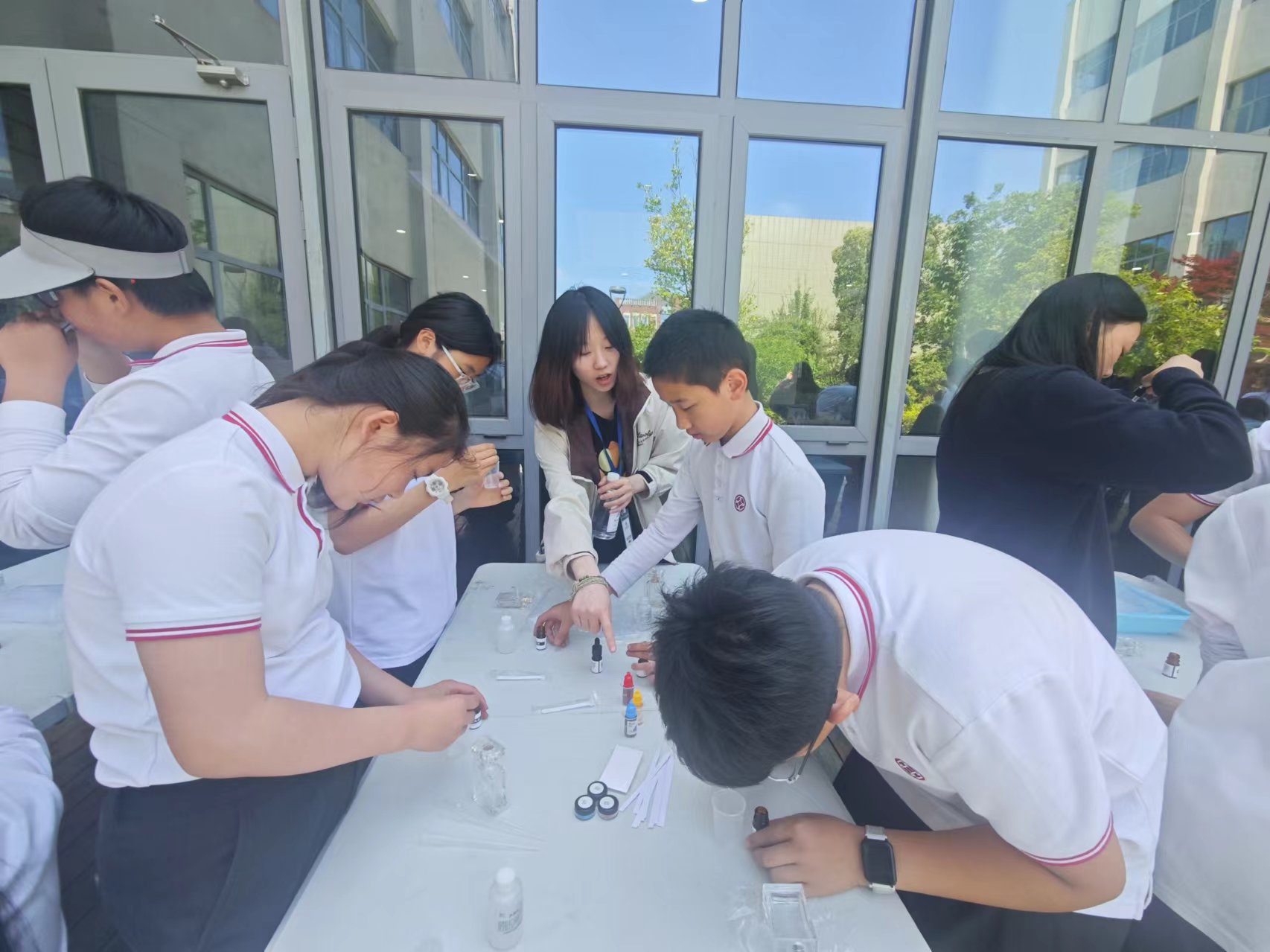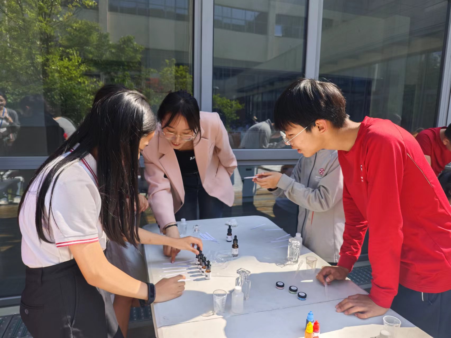学生指导小学生做调香实验