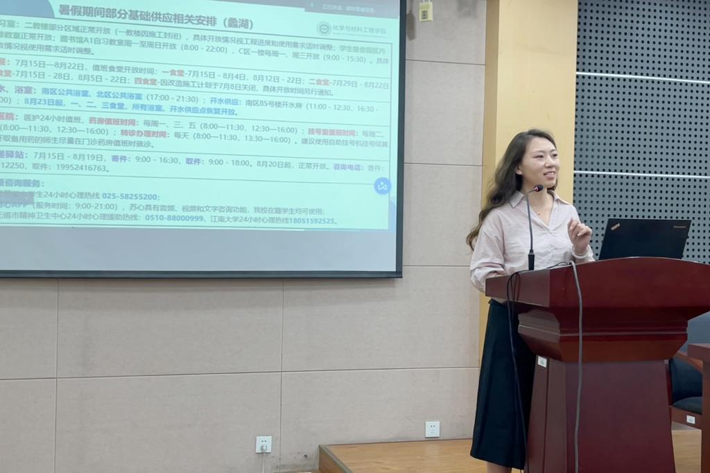 会上,侯玉莹对假期留校期间学校后勤保障和基础供应等相关安排做了详细讲解,提醒假期留校注意事项,强调“健康守门员”需要担负起“关心爱护、及时反馈”的重要职责,争做异常情况的“吹哨人”和同学朋辈的“知心人”。