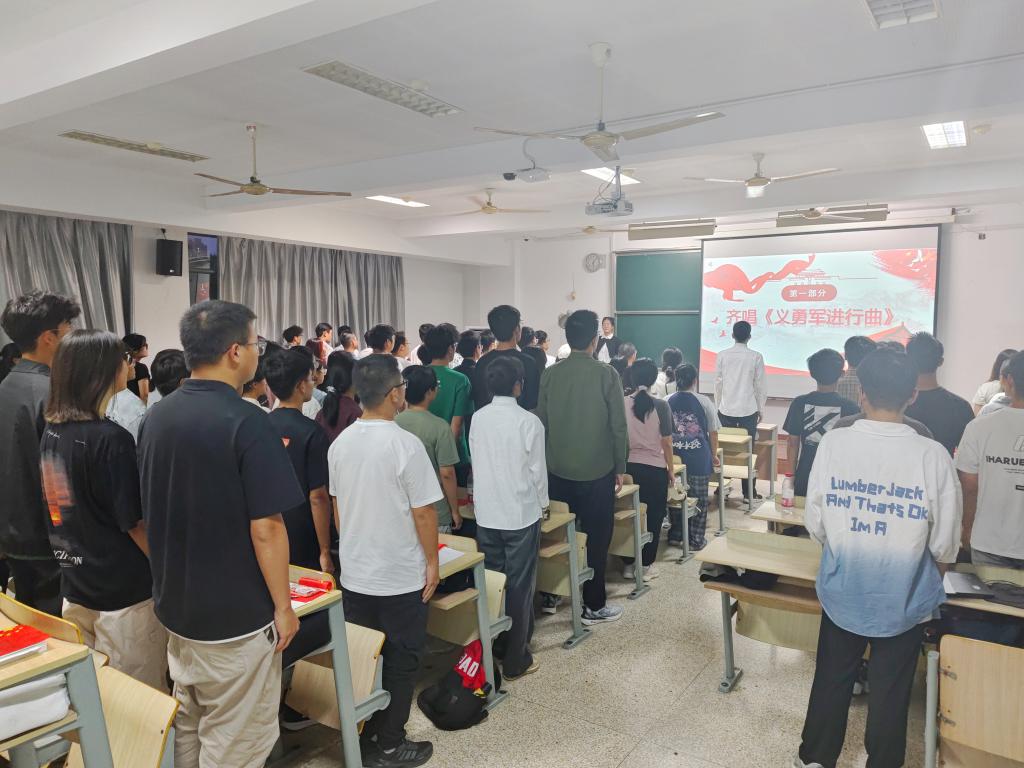 活动伊始,全体同学起立,高唱国歌,铿锵有力的歌声为本次活动揭开序幕。彭仪敏、侯欣驰、李子悦、陈逸峰朗诵《大写的祖国》,激情澎湃的朗诵将气氛推向了高潮,朗诵者们用激昂的声音诉说着对祖国的热爱,字字句句都饱含着青年学生对祖国的深情告白。