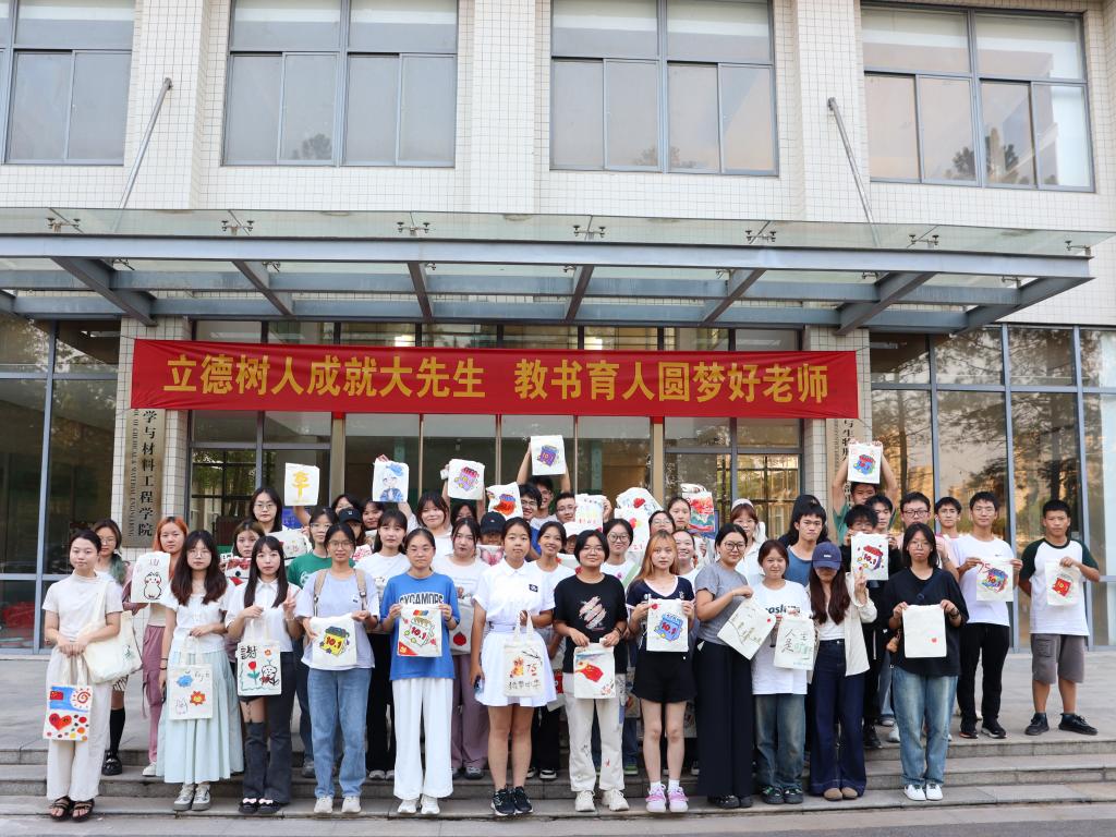 活动稍早前,学院还开展了“喜迎国庆,笔绘祖国”手绘帆布包活动,绘画过程中,同学们彼此讨论如何搭配色彩,共同绘制出对祖国的祝福,一幅幅生动的爱国图案在帆布包上逐一显现,传递了他们对祖国的无限热爱和深情祝福。大家手捧着创作完成的帆布包,脸上洋溢着幸福的笑容。