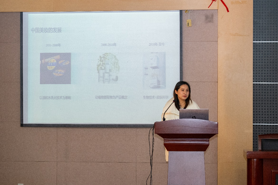 化妆品方向资深配方师陈凤凤老师,为同学们带来了一场关于化妆品成分配方及成品趋势发展的学术盛宴。