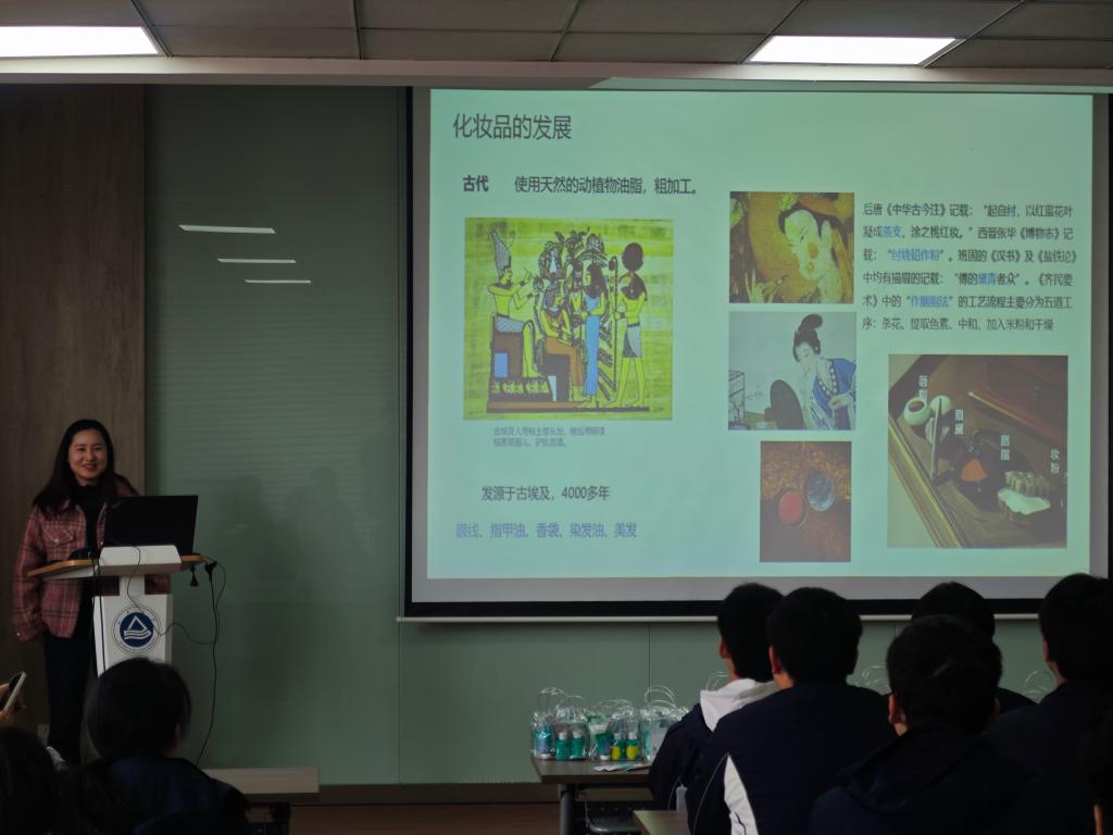 活动邀请到化妆品创新中心研究员陈凤凤,为高中生们开展一场别开生面的专业科普讲座。陈凤凤以《化妆品科学探秘》为主题,通过妙趣横生的案例解析和条理清晰的知识图谱,阐释了化妆品发展简史、配方原理及产品种类划分,特别针对青春期皮肤护理难题提出科学护肤方案,充分调动了学生对化学学科的深层兴趣,切实传播了化学也可以美丽、绿色、安全的先进理念。讲座结束后,陈凤凤为每一位学生送上海风里品牌赞助的青少年洗护三件套,预祝他们高考顺利、金榜题名。