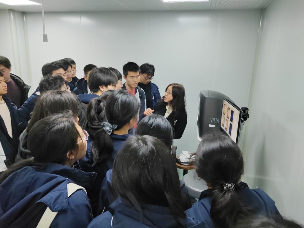 分享结束后,化妆品功效评价中心负责人董伟带领高中生们深度体验了中心实验室的标准化操作流程,深入浅出的讲解让同学们对产品开发的严谨性有了更直观的感受。