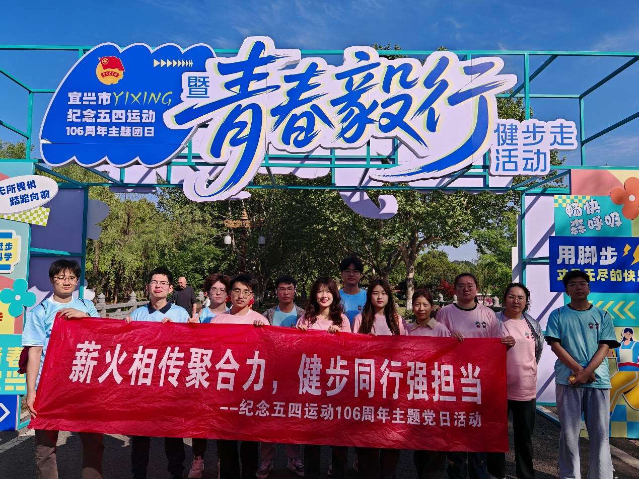 为深入学习贯彻习近平新时代中国特色社会主义思想,纪念五四运动、弘扬五四精神,宜兴市团市委于4月25日组织开展纪念五四运动106周年主题团日暨“青春毅行”健步走活动。学院2023级研究生第二党支部全体党员参与活动,联合开展“薪火相传聚合力,健步同行强担当”主题党日活动,激励广大青年党员坚定理想信念、勇担时代使命。此次活动选址宜兴市龙背山森林公园,以“青春毅行健步走+红色教育”的形式,将思想洗礼与身体力行紧密结合,引导青年党员在实践中厚植爱国情怀、增强责任担当。
