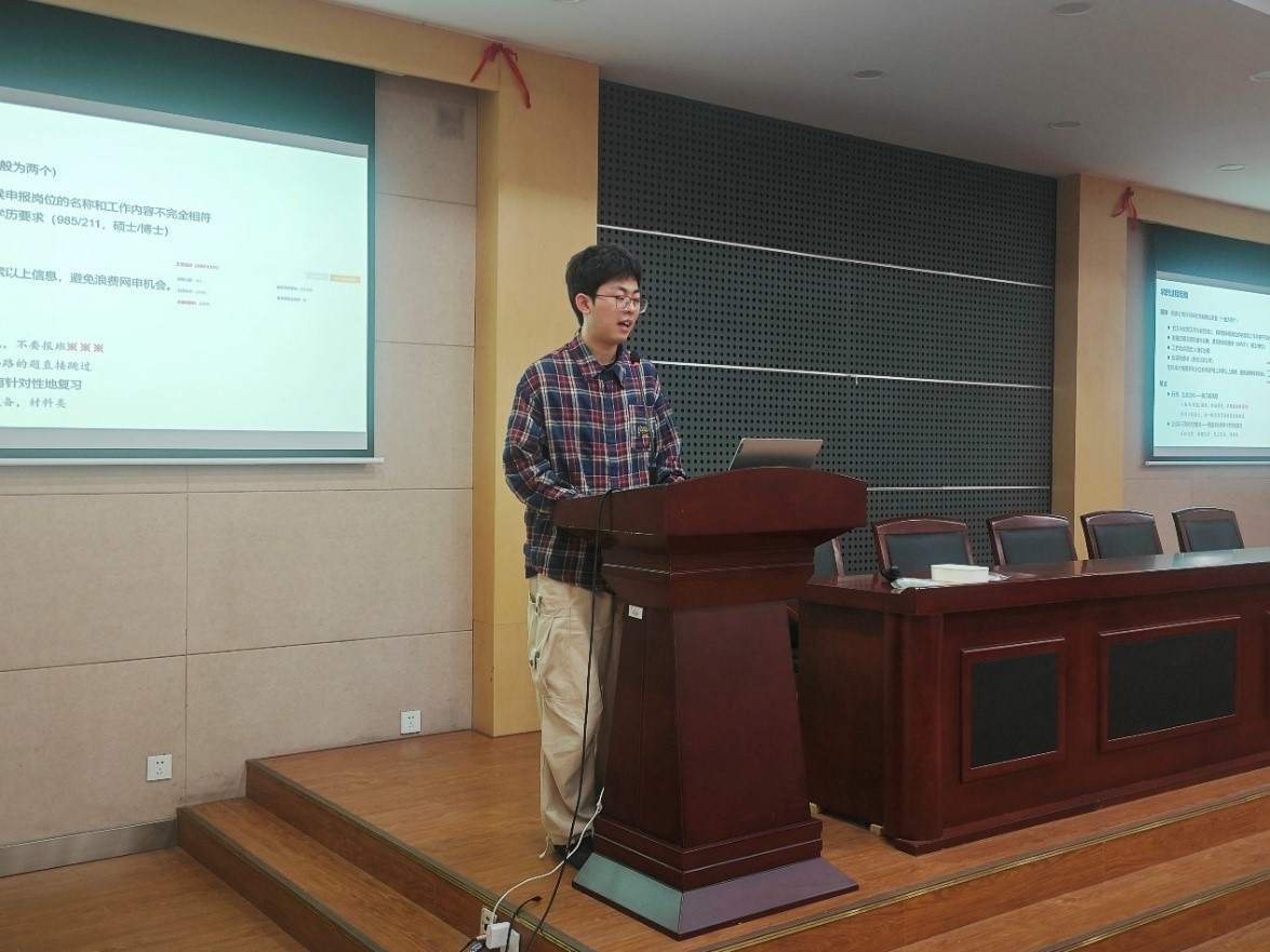 就业指导中心宋肖飞老师作就业指导专场讲座,并邀请2025届研究生就业代表杨铖霖、王新新开展求职经验分享,活动吸引近200名研究生积极参与,现场座无虚席。
