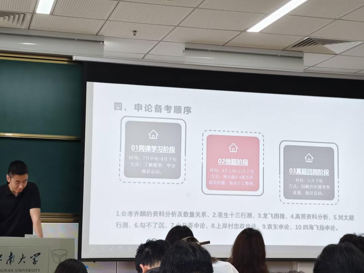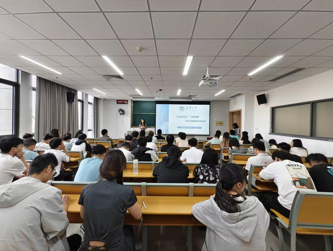 “化山论见之职引未来系列活动”第二期——“上岸攻略”考公考编专场讲座在东氿校区知行楼 C102 顺利举行。
