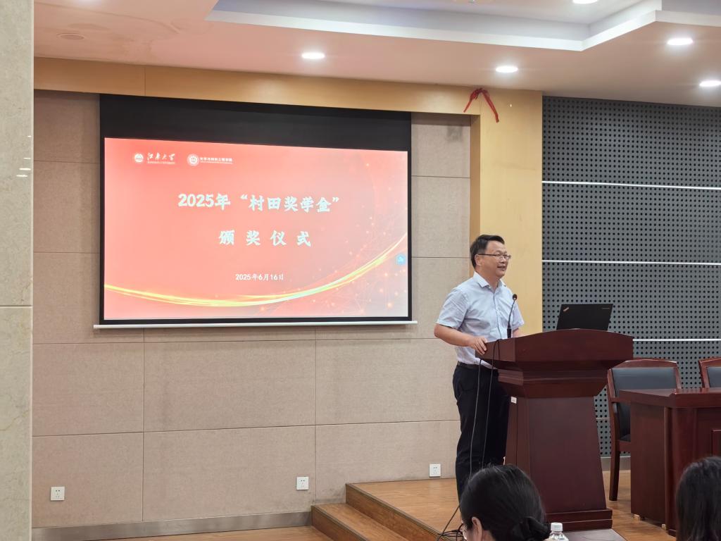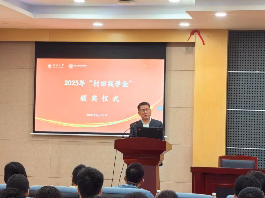 山崎俊信为本次典礼致辞。他介绍了村田公司的基本情况,回顾了“村田奖学金”的设立与发展,希望获奖学生能够继续努力、重视理论与实践的结合,勇攀高峰。