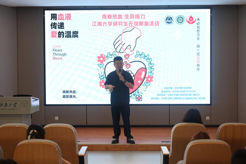 2023级研究生第二党支部组织举办,党支部书记程子涵主持活动,旨在普及献血知识,弘扬奉献精神。并随后在知行楼二楼大厅开展了爱心献血活动。宜兴市红十字会血站党支部书记、站长潘迎霞,副站长王云霞,百合动漫