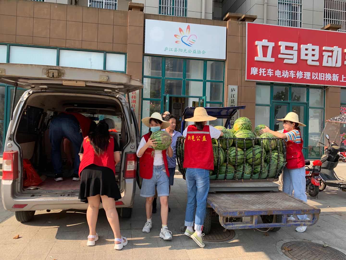 方文静同学与11位庐江县阳光公益协会的志愿者自发前往安徽洪涝灾害地区,为抗洪抢险官兵送去清凉饮品与水果。
