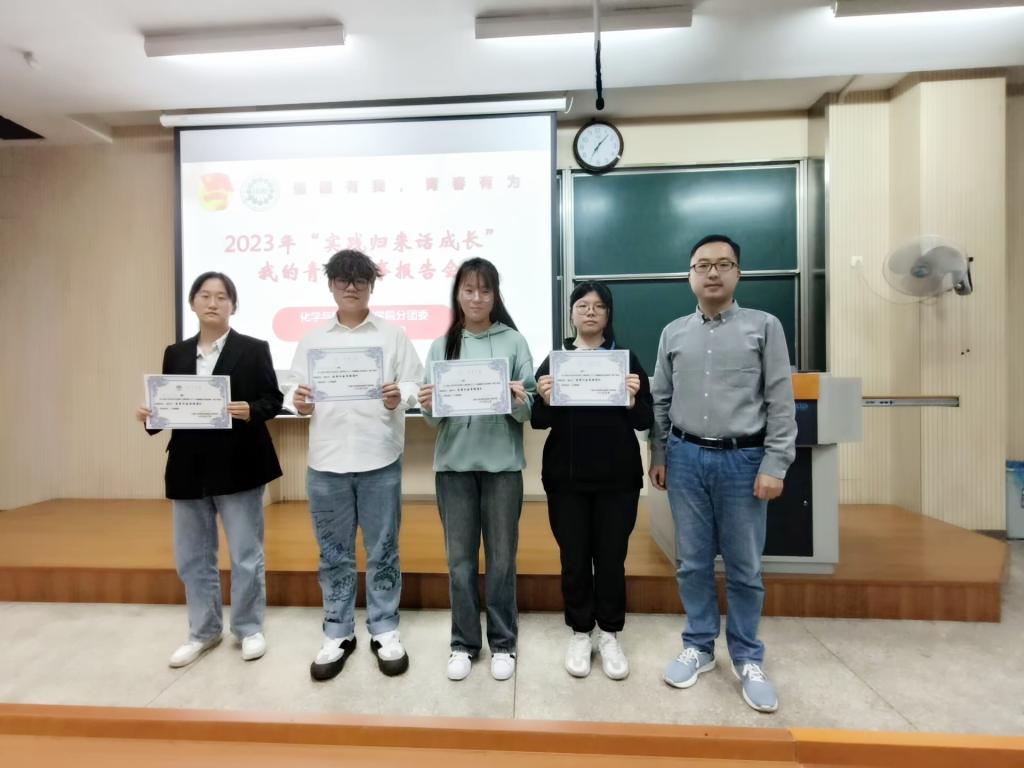 2023级全体新生,邀请了4支社会实践优秀团队,由高年级的学长学姐分享他们的社会实践经历与经验。“望来路,踏新程”实践团队进行了实地走访,通过查阅改革开放的旧资料,体会改革开放给人们生活带来的巨变,与此同时,他们去到五个地区进行戏曲宣传,让戏曲走进人们的心中;万方芳华实践团重行发展之路,汲取强国力量,在万华烟台工业园观看习近平总书记参观万华时做出的讲话视频,追寻红色足迹,继承革命精神,在胶东革命纪念馆感悟红色文化,缅怀先辈伟绩,在烟台山公园进行红色研学,重温信仰力量;澧蠡之缘实践团,面对前路的迷雾与荆棘,永不退缩,通过线上与线下相结合的方式,对接张家界的多所高中,运用互联网为学弟学妹们答疑解惑,在指导高考志愿填报中贡献自己的一份力量;鼋访芳华团队深入基层、走进社区、扎根乡村,通过整理访谈资料,深入老兵群体,聆听他们的英雄故事,主持开展“礼赞二十大,红心永向党”老兵故事征集活动和评优评选答辩活动。汇报结束后,鞠峰为4支优秀实践团队颁奖并合影留念。