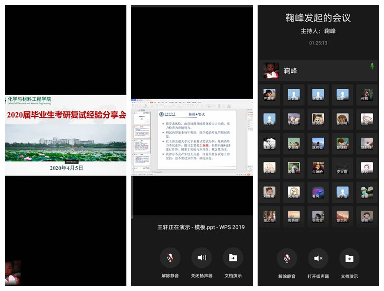 召开2020届毕业生线上考研复试经验分享会。此次会议邀请了2015级成功考研学生代表王轩、王满、姜林萍、赵克凡、谢逸飞同学进行经验分享,70余位考研学生参会,辅导员鞠峰主持会议。