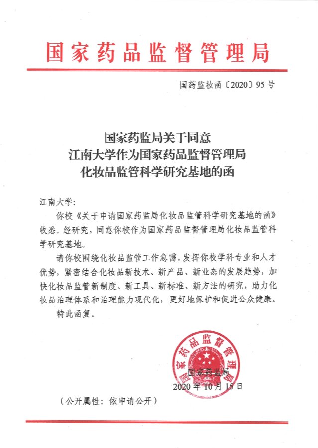 国家药品监督管理局化妆品监管科学研究基地的函