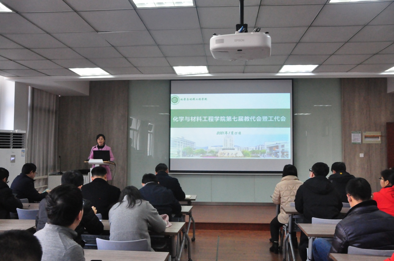 七届一次教代会暨工代会在化工楼A316报告厅隆重召开。学院党政班子,来自学院各部门、各系的代表47人出席大会。大会由党委副书记田卫平同志主持。