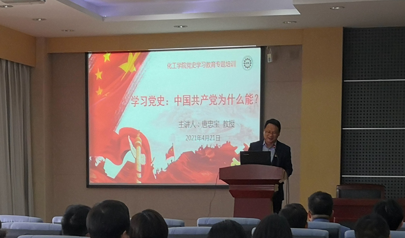 举办党史学习教育专题讲座第二讲,特邀党史学习教育江苏省委宣讲团成员、我校马克思主义学院教授唐忠宝为主讲人,全院教职工聆听讲座。讲座由学院党委书记潘庆伟主持。