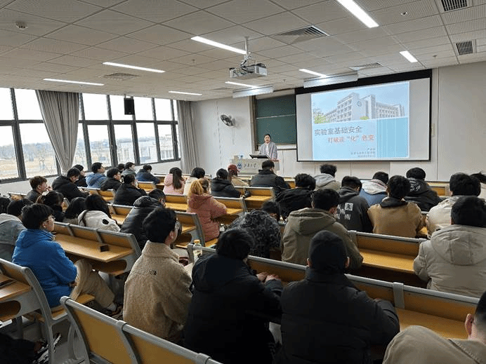实验室安全管理举措、常见实验室安全隐患等方面,并结合具体事例进行了深入讲解,并提醒大家学院为同学们配备的安全基础设施以及各类设备的用途与使用方法,希望同学们在遇见紧急情况时不惊慌,保持沉着冷静,正确处理问题。