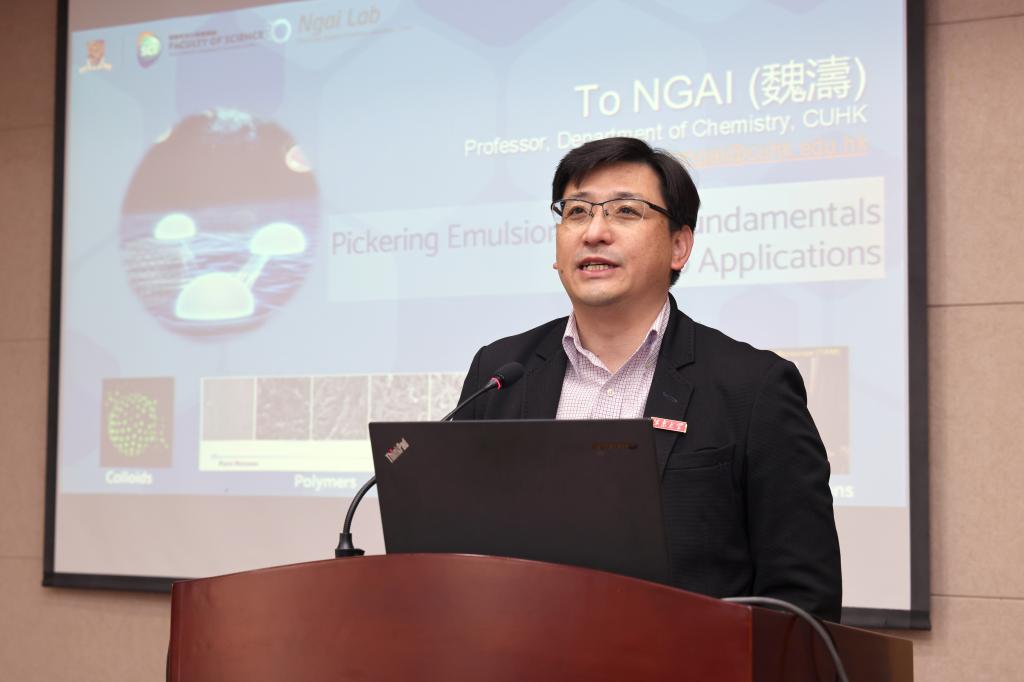 授聘仪式结束后,魏涛教授为在座师生以《Pickering Emulsion - from Fundamentals to Applications》为主题作了专题报告,为来自化工、食品等相关学院的师生们讲述了颗粒稳定的乳液的科学机理与基础,一起探讨乳液发展的新应用。他以“故事化”方式深入浅出地讲述了Pickering乳液的基础与应用,引发了在场师生的积极互动,热烈讨论,对胶体化学的产学研结合有了新的认识和思考。