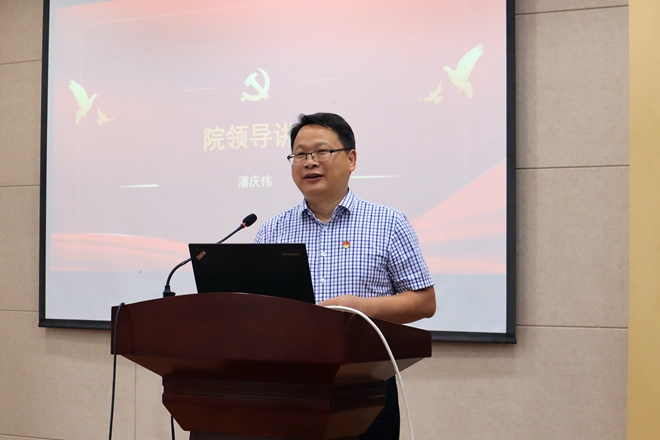 潘庆伟做大会总结致辞。他围绕党的力量何在,中国共产党为什么、为了谁、依靠谁,中国共产党党员应该怎么做、怎么干、怎么行寄语党员。他指出,党员同志必须紧跟习近平新时代中国特色社会主义思想指引,阔步前行,前方风高浪急需要全体党员共同担当。他表示全体党员要始终坚持常于小事间为人民服务,在遇到艰难困苦后坚定理想信念,在大是大非面前牢记入党誓词,更要在行岁月长河中永葆党员本色。