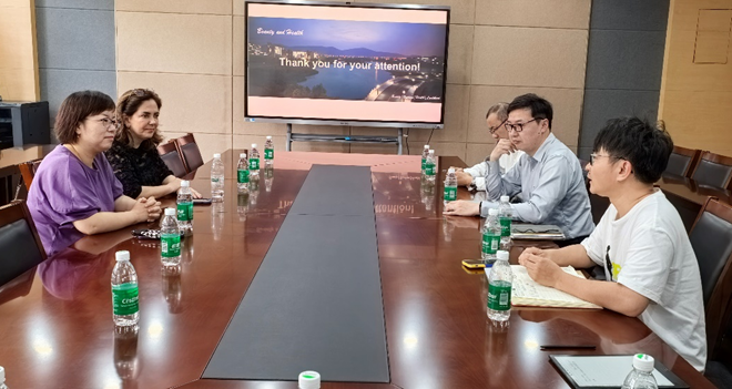 的基本情况以及学校围绕化妆品开展的学科交叉研究情况,同时介绍了化妆品创新中心的发展历程以及当前研究关注的重点。化妆品相关团队老师围绕自己的研究领域作了简要介绍,并与Vania Leite教授开展了热烈的讨论。