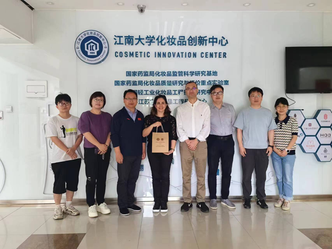访问交流,双方就化妆品科学与技术创新推动化妆品行业高质量发展进行了深入探讨交流。院党委书记潘庆伟、化妆品创新中心主任杨成教授、化妆品相关研究团队主要成员参加了交流活动。