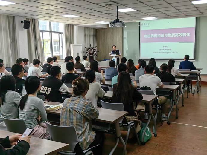 报告会上,李景虹院士介绍了清洁能源主导的资源化回收方法是将来环境水治理最可持续的研究方向,深入剖析了电化学在水处理的资源化、能源化利用中的关键作用,提出电极界面构造与物质高效转化是同步实现污水处理与能源回收高效电化学转化过程的两个核心要素,并针对目前电能转化效率较低的瓶颈问题,通过调控电催化材料的组成与结构,提高电极反应动力学,加快电子定向迁移,降低电子转移能垒,并通过传质过程强化,实现对水污染物资源化和能源化的同步高效电化学转化。在此基础上,通过对反应器等装备的设计,推动相关技术在工程实践中应用,取得了重大的成果。李院士的研究涵盖了电化学在水处理的资源化、能源化利用中的原理创新、装备设计及工程应用的全链条内容,为解决水中污染物高效电化学降解的提供了坚实的基础,对推动环境电催化的发展具有重要意义。李院士报告内容深入浅出、精彩生动、创新性突出、启发性深刻,引起了广大师生们积极交流和讨论。