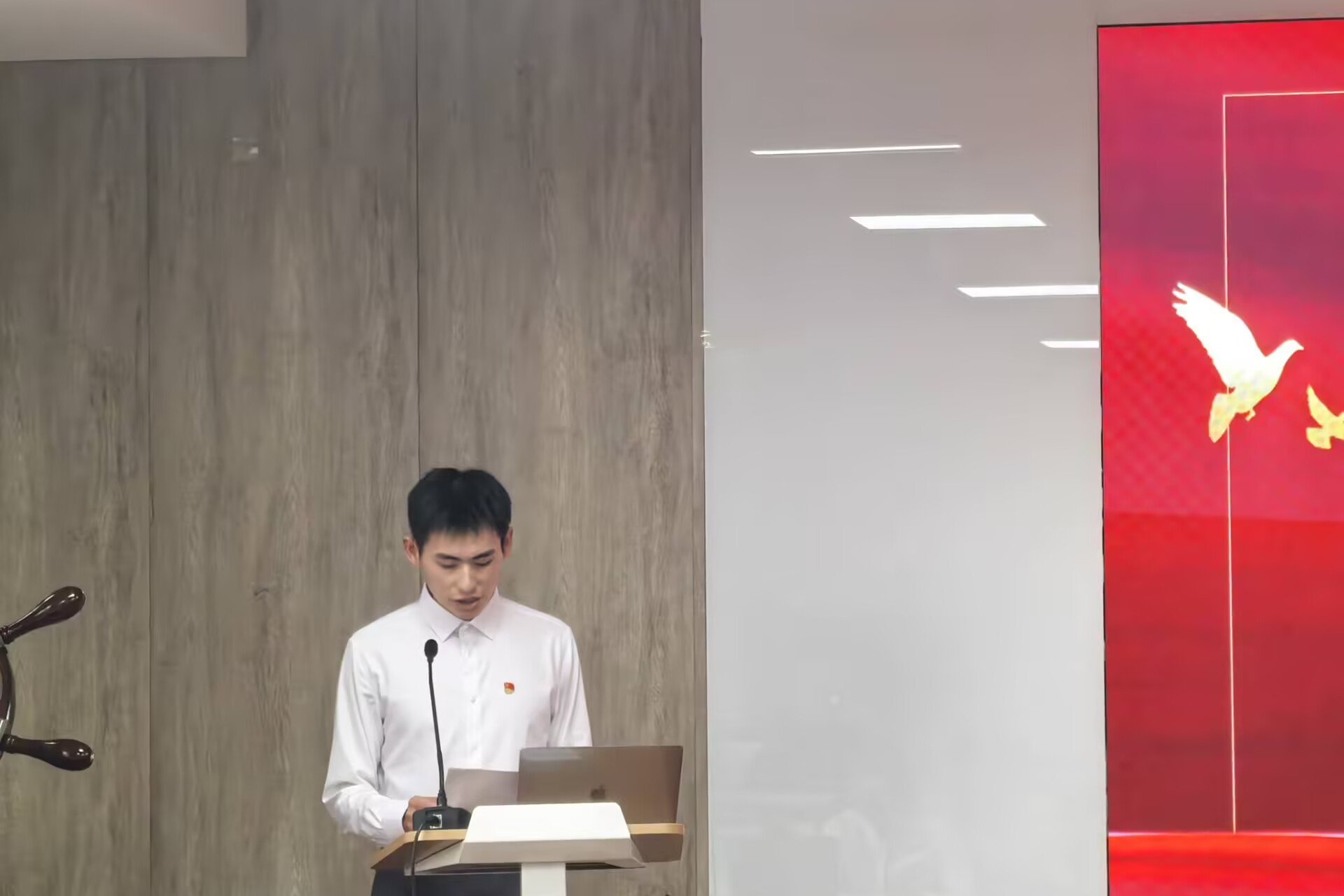 应化2203班李子洋同志和2023级材料硕士研究生栗星同志分别作为优秀党员代表与预备党员代表发言。李子洋分享了自己在党组织培养和教育下的学习发展感悟,他以执着为笔,书写奋进篇章。栗星讲述了坚定为人民服务的信念及不懈向党组织靠拢的心路历程。他们的发言真挚动人,激励了在场党员。