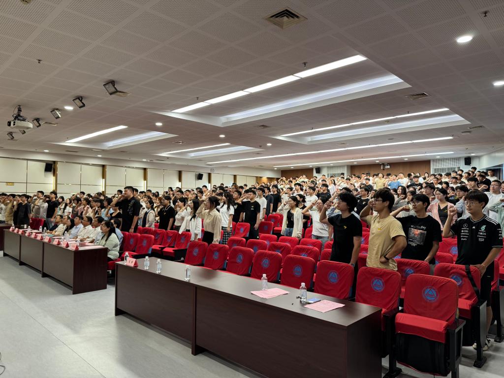 在宣誓环节,全体新生在胡毅同学的带领下郑重宣誓,承诺将恪守学术道德、勇攀科学高峰,以实际行动践行“笃学尚行、止于至善”的校训精神。