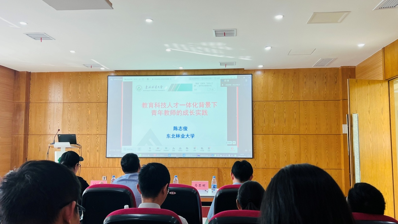 在专家分享环节,三位学者结合自身经历与工作实践,为教师职业素养养成与多维成长提供新思路。东北林业大学材料学院陈志俊教授以《教育科技人才一体化背景下青年教师的成长实践》为题,从个人经历出发,剖析青年教师面临的挑战与机遇。他提出,产学研深度融合是突破发展瓶颈的关键,鼓励青年教师主动对接企业需求,构建“科研-教学-育人”协同发展路径,实现个人价值与学科使命的同频共振。华东理工大学百合动漫