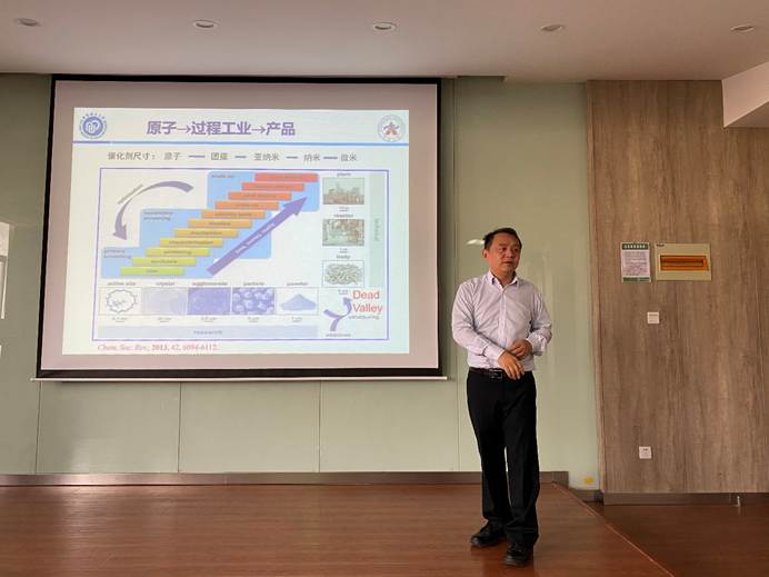 A316报告厅做了题为“工业催化剂设计、制备科学方法”的学术报告。本次报告会由董玉明教授主持,众多老师和学生参加了此次报告会。韩一帆教授首先回顾催化学科的发展历程。接着从催化剂的静态表征入手,谈及静态催化剂的表征认知与实际反应过程的差异。之后深入浅出地谈到原位动态解析催化剂构效关系的重要性。最后,以催化剂的设计与反应工程、反应器设计等多学科交叉融合实现工业化应用为例子,着重阐述了工业催化剂在实际应用中的“卡脖子”工程技术难题。报告现场师生就“工业催化剂设计理念、全生命周期合成方法”“原位动态解析催化剂的构效关系”等话题进行了热烈的讨论和交流。