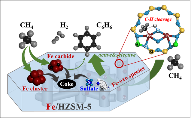 图1.铁物种类型对CH4活化转化的影响