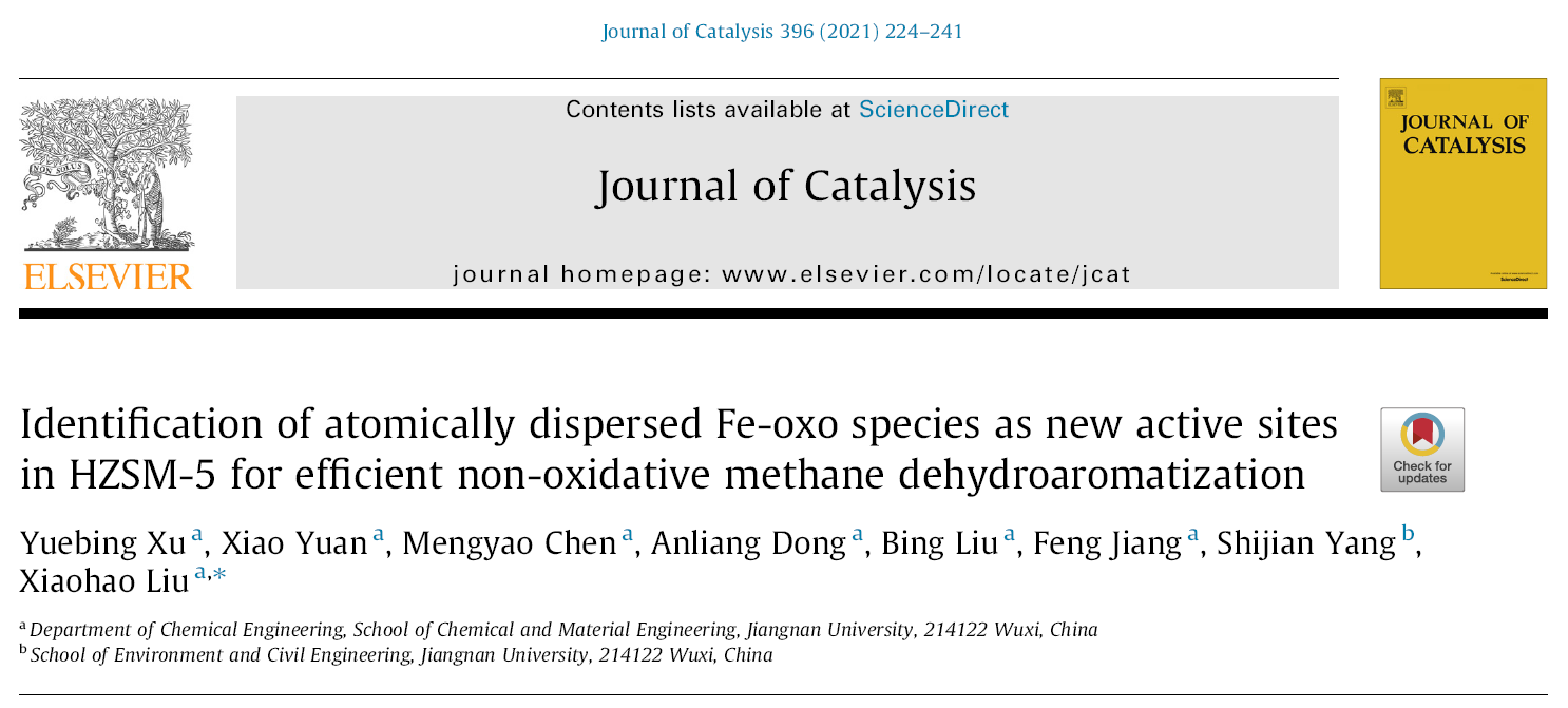 刘小浩教授团队在揭示甲烷无氧催化转化制芳烃的新的活性中心的研究中取得重要进展,研究成果以题为“Identification of atomically dispersed Fe-oxo species as new active sites in HZSM-5 for efficient non-oxidative methane dehydroaromatization”发表在催化领域权威期刊《Journal of Catalysis》(J. Catal.,2021,396, 224-241)。该论文百合动漫