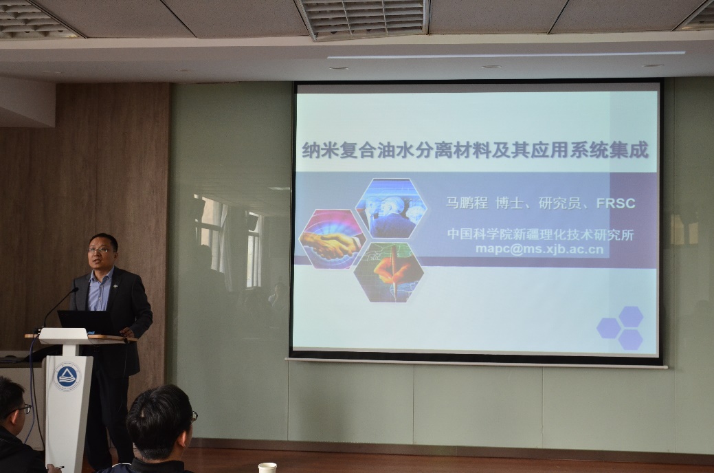 A316学术报告厅做了题为“纳米复合油水分离材料及其应用系统集成”的精彩报告。马丕明教授主持了报告会,并对马鹏程研究员的来访致以热烈的欢迎。马鹏程研究员主要围绕纳米复合油水分离材料及其应用系统集成的最新研究进行展开,重点介绍以改性和复合技术为基础的新型油水分离用高分子纳米复合材料的设计思路和制备过程,并以所得材料作为油-水分离设备核心组件应用于不同行业的油-水分离过程。这将对提高环境资源利用率以及污染物治理具有重要意义。报告会吸引了众多师生前来参加,现场气氛十分活跃,相互间进行了广泛的讨论与交流。