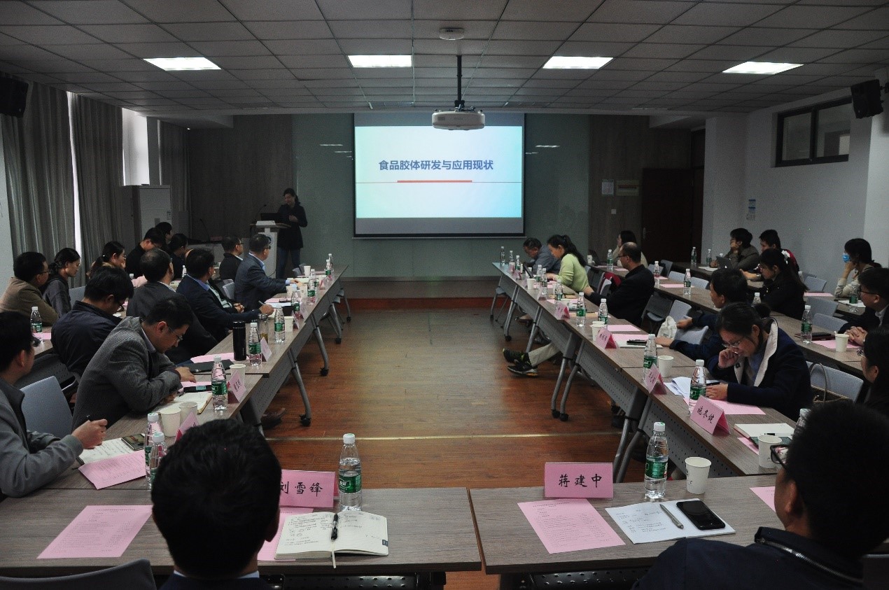 东为富院长主持,共分为11个主题报告。徐丽广教授首先以“纳米手性化学生物学”为题,系统介绍了他们团队在这一领域的研究进展。随后赵旭副教授、洪雁教授、张永民副教授、陈羚博士、蒋航博士、蒋建中教授、施冬健教授、李小杰副教授分别围绕智慧型长余辉多功能探针的构建及诊疗应用、淀粉的结构与流变性能、无表面活性剂微乳液的构筑及应用、脂溶性营养素的递送及其生物利用率研究、Pickering乳液模板化及包载体系研究、智能型表面活性剂分子设计合成与应用、功能粒子的构筑及其材料中的作用、医用金属植入物表面大分子自组装生物功能图层等研究内容做了高水平报告。另外杨成教授、钟芳教授分别以“化妆品中的胶体界面科学问题”和“食品胶体研发与应用现状”为题总结了化妆品、食品中胶体的基础理论研究现状和应用研究情况。