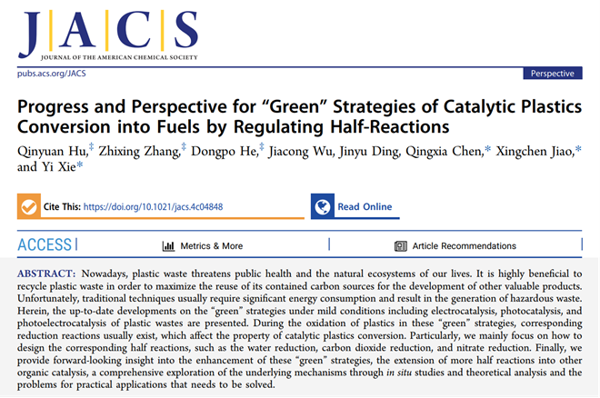 近期,百合动漫 焦星辰教授、陈庆霞副教授与中国科学技术大学谢毅院士合作,在温和条件下塑料催化转化方面发表重要观点论文,相关工作在J. Am. Chem. Soc.”上发表:Progress and Perspective for “Green” Strategies of Catalytic Plastics Conversion into Fuels by Regulating Half-ReactionsJ. Am. Chem. Soc.每年发表论文3千余篇,其中仅20篇左右是由主编亲自邀请各重要前沿分支的领军学者,就领域性进展和前瞻撰写的Perspective文章,其对学科发展的重要意义和权威性不言而喻。该论文百合动漫 2022级硕士研究生胡秦源、2023级硕士研究生张志兴和2023级博士生何东坡为共同第一作者。