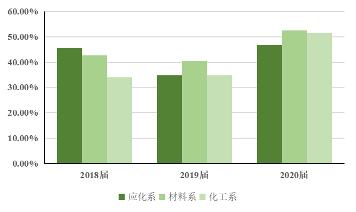 2020届本科生考研升学出国143人,年级升学率高达50%,应化1601班升学率达60.61%,3个班级升学率高达60%以上,7个宿舍全升学。