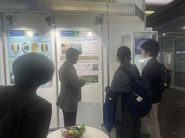 金子达雄、金子麻衣子与合作企业进行了共同展示,其中包括GRIPs株式会社、大日精化工业株式会社和长濑产业株式会社。通过设立光开关型生物尼龙的展位,接待上百位生物材料领域的专家,加深了与世界各地科研人员和企业的交流,拓宽了合作渠道。