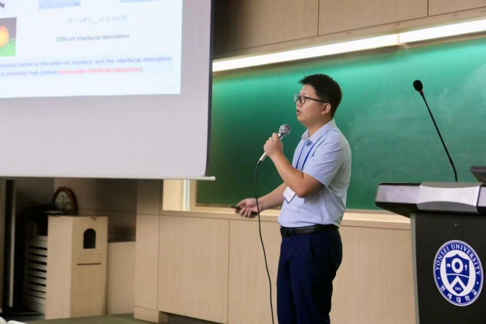 此次研讨会是胶体与界面领域的一次国际会议,聚集了来自美国、韩国、日本等国家地区的杰出研究人员,为胶体与界面化学领域的前沿研究提供了宝贵的交流机会。会议期间,蒋航发表了口头报告,听取了领域内各专家的前沿研究进展,涉及颗粒的自组装、乳液制备新技术等,为其团队在胶体与界面科学领域的研究提供了新的启示和方向。同时,蒋航与多名其他国内外专家学者展开了深入交流,分享了各自的研究成果和经验,深刻了解了该领域的最新研究动态,拓宽了研究视野,提升了学术水平。