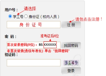 财务处”,在“业务办理”中选“学生缴费”。考生账号已开通,切勿自行注册。复试收费标准:80元/生(仅申请考核考生,硕博连读考生无须缴费)。用户号选择“学工号”,输入正确的身份证号。缴费系统初始密码(8位)为大写字母“BS”加准考证编号后6位(准考证查看网址://yzgmis.yurianimes.net/zsgl/bswb/login.aspx),如“BS123456”。非首次登录缴费系统的考生(含往年报考考生及误注册考生)使用“找回密码”,登录并缴费。